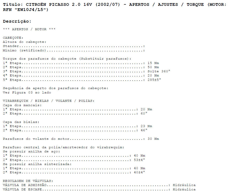 TORQUES DE APERTOS - CABE�OTE E EIXOS