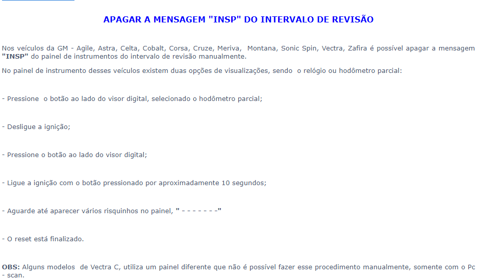 RESET LUZES DE AVISO