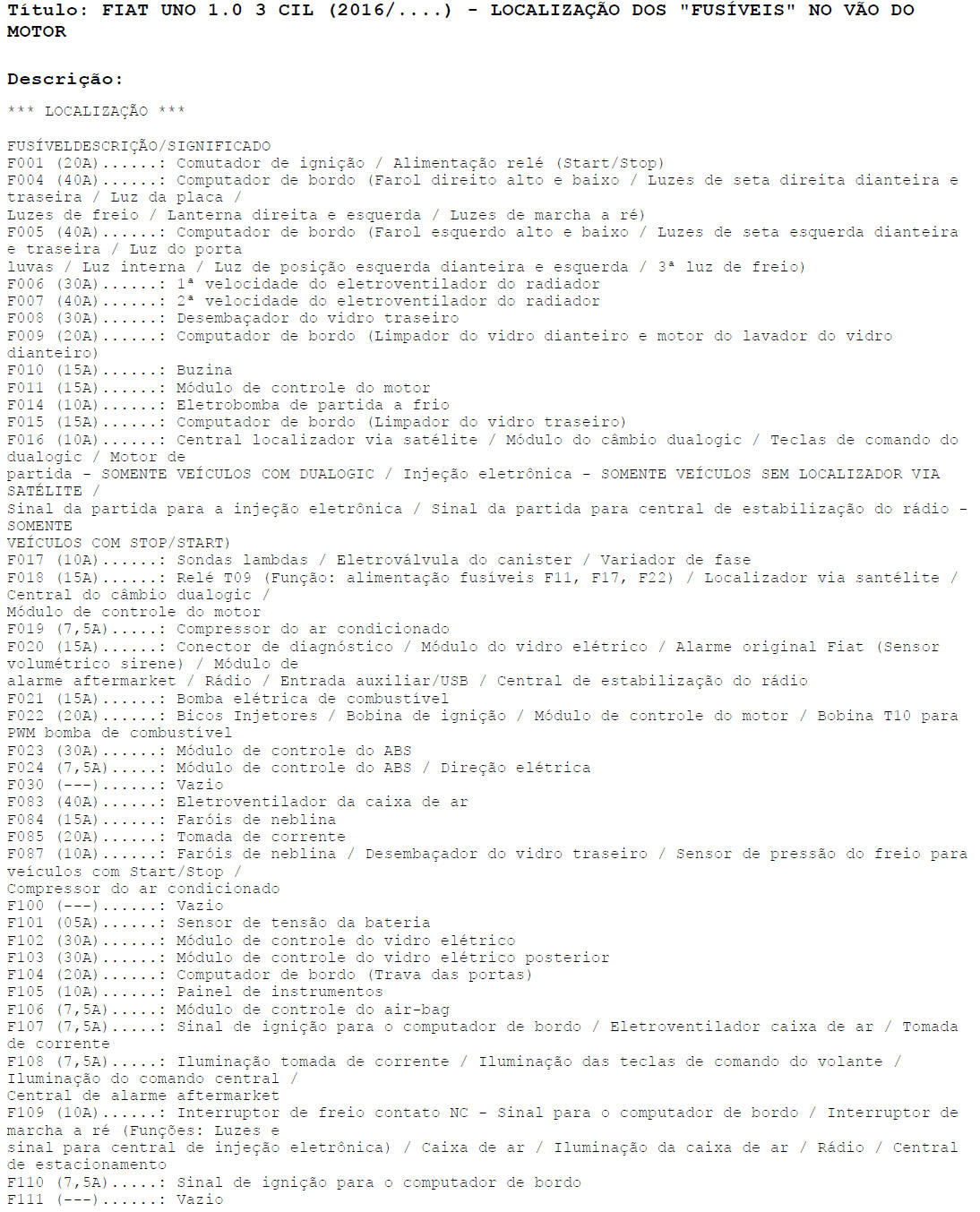 C�DIGOS DE FALHAS FCA - ARGO - CRONUS - MOBI -TORO