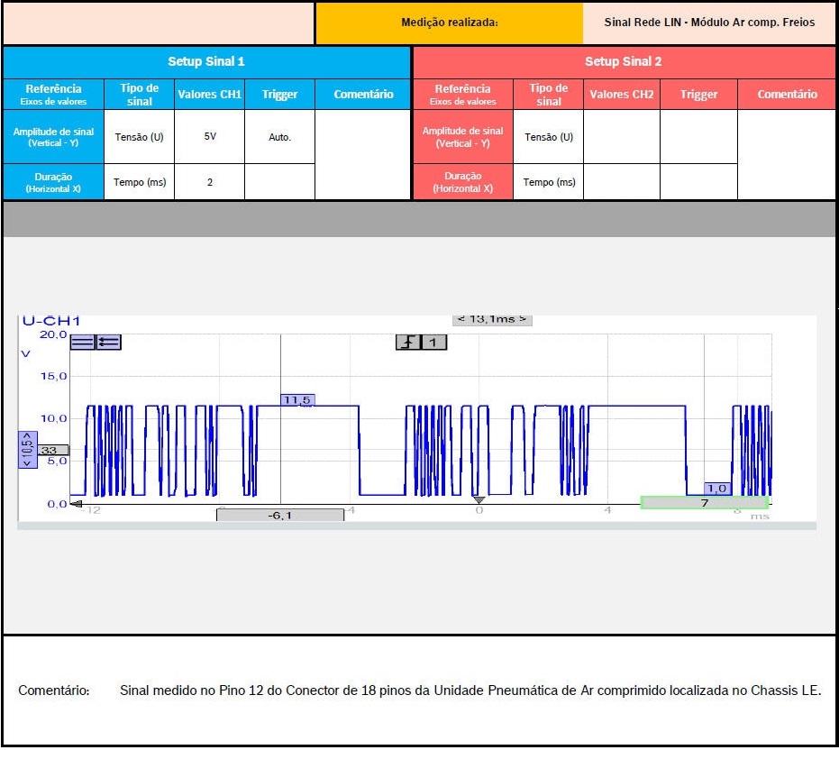 TESTANDO O SINAL Sinal Rede LIN - M�dulo Ar comprimido dos Freios
