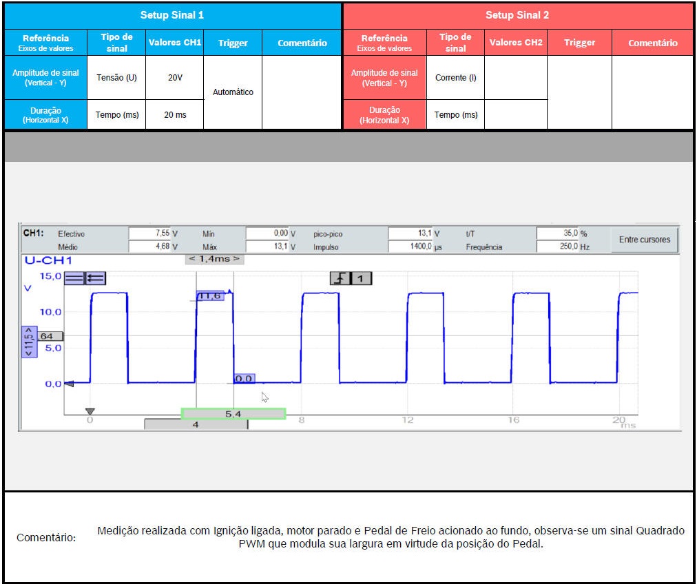 SENSOR DE FREIO - SINAL CARACTERÍSTICO