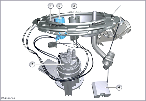 O sensor de pressão de combustível transmite um sinal de tensão para a unidade de controle de gerenciamento do motor (unidade de controle DME) indicando a pressão do sistema entre a bomba de combustível elétrica e a bomba de alta pressão. Ele monitora a pressão do sistema (pressão de combustível) a montante da bomba de alta pressão. O sistema eletrônico digital do motor DME executa verificações contínuas para comparar a pressão nominal definida com a pressão real. O DME responde a desvios com ação, como o uso do módulo de controle da bomba de combustível elétrica EKPS para reduzir a tensão para a bomba de combustível elétrica. Isso regula a pressão de entrega na qual o combustível é fornecido ao motor até o nível correto. Descrição breve do componenteA seção a seguir descreve os seguintes componentes no sistema de combustível de baixa pressão: