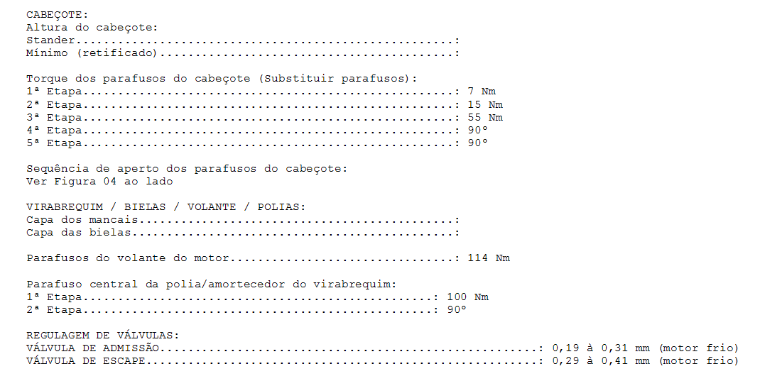 ESPECIFICAÇÕES DO MOTOR