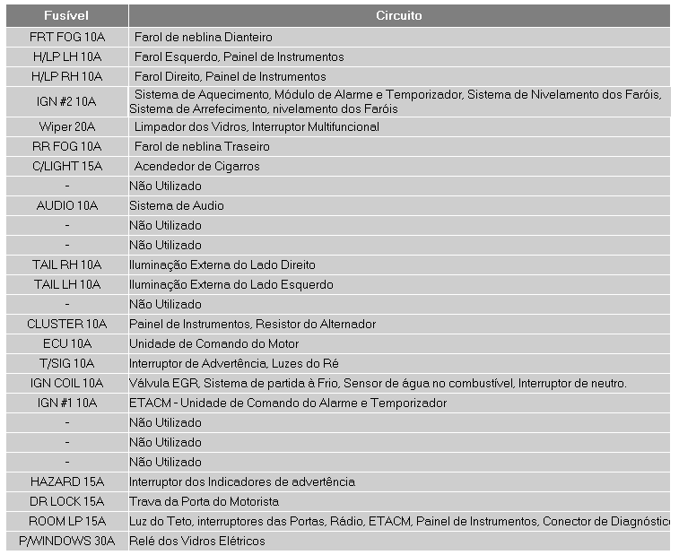 L�mpada de Cabe�a, Interruptor da Janela de Pot�ncia do Motorista |