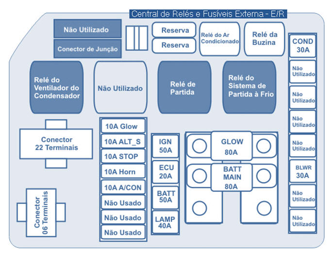 ve�culo. Caixa de jun��o E / R (Rel� do ventilador do condensador) |