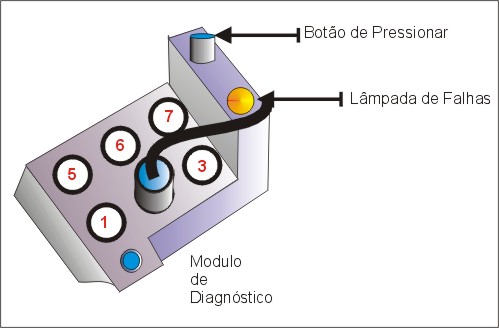 1) Ignição desligada 2) Remova a Tampa do Módulo de Diagnóstico 3) Ensira o Cabo de Jumper na Casa 02. 4) Ignição Ligada . 5) Aperte o botão de Diagnóstico pela metade por 01 segundo. 6) A lâmpada de Falhas ira se acender. 7) Agora obtenha os Códigos 8) Pressione o botão de código até o fim e obtenha os códigos. 9) Repita por 01 vez os códigos de falhas 10) O Sistema ira apresentar estes códigos em seqüência. 11) Comparar os códigos com a Tabela. |