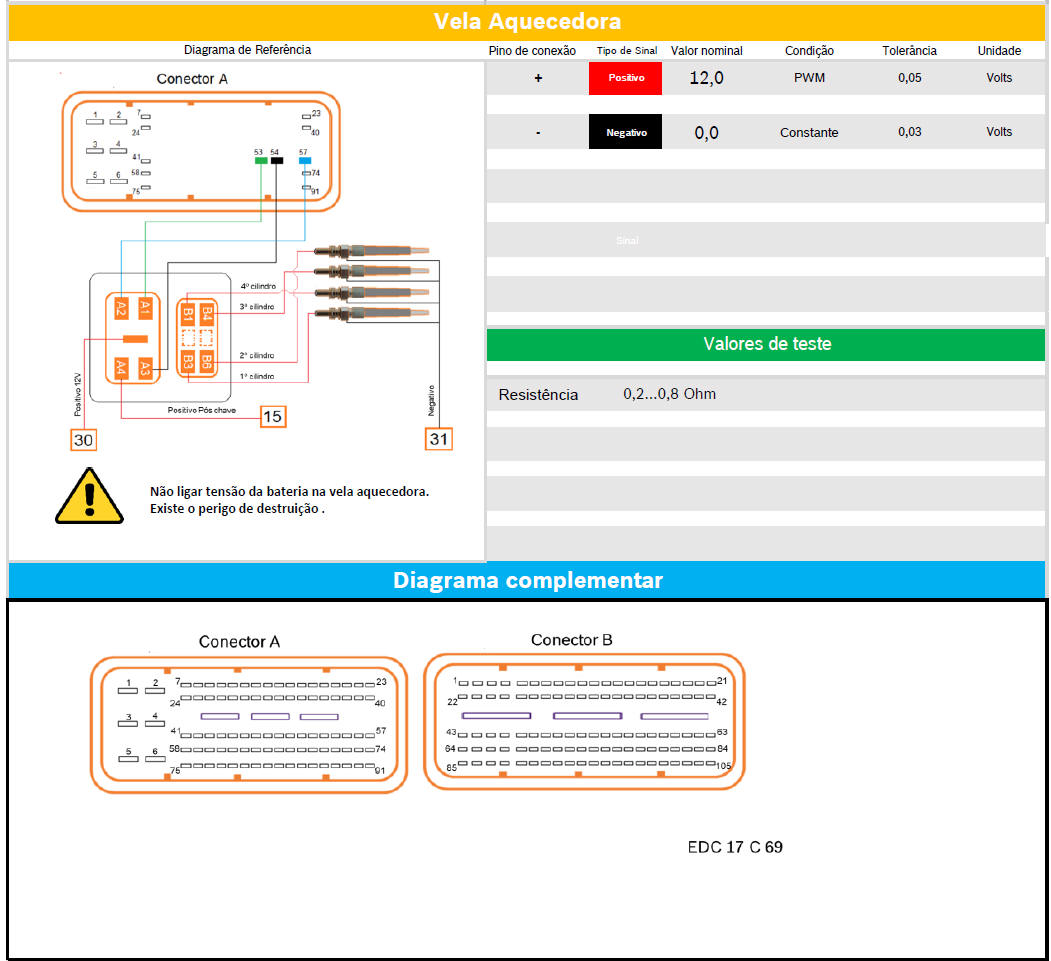 Teste do controle da vela de aquecimento