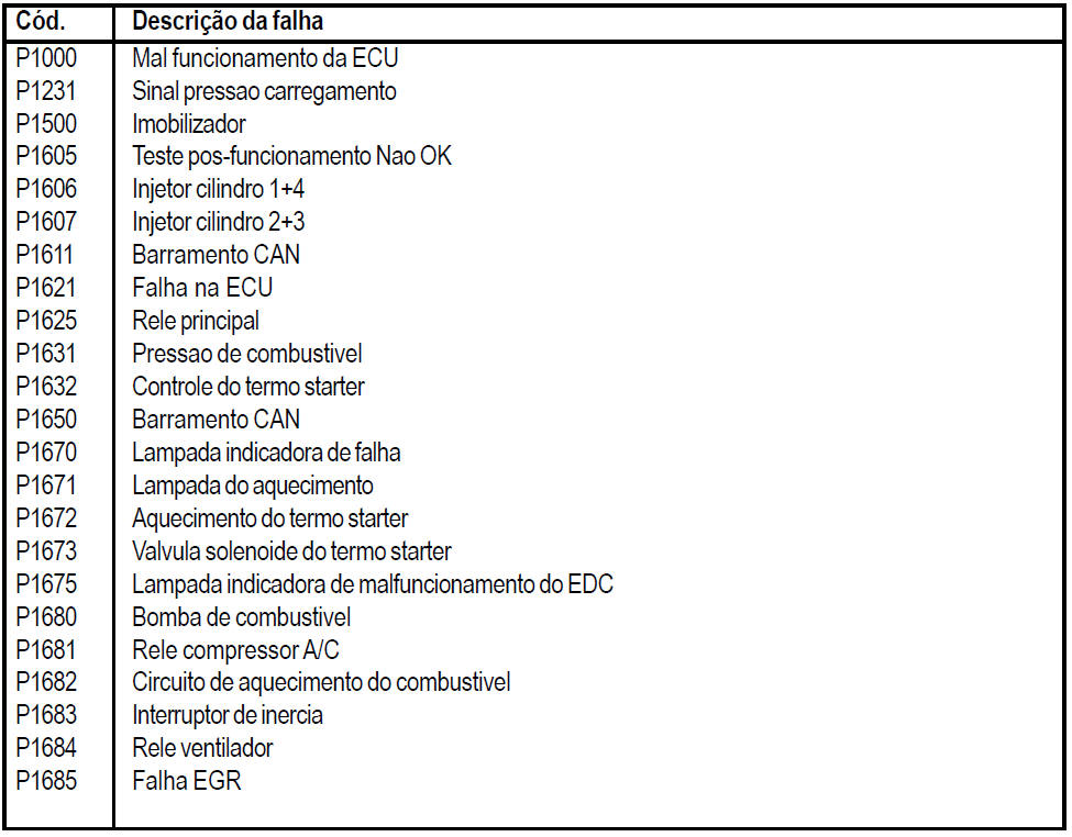 C�DIGO DE FALHAS