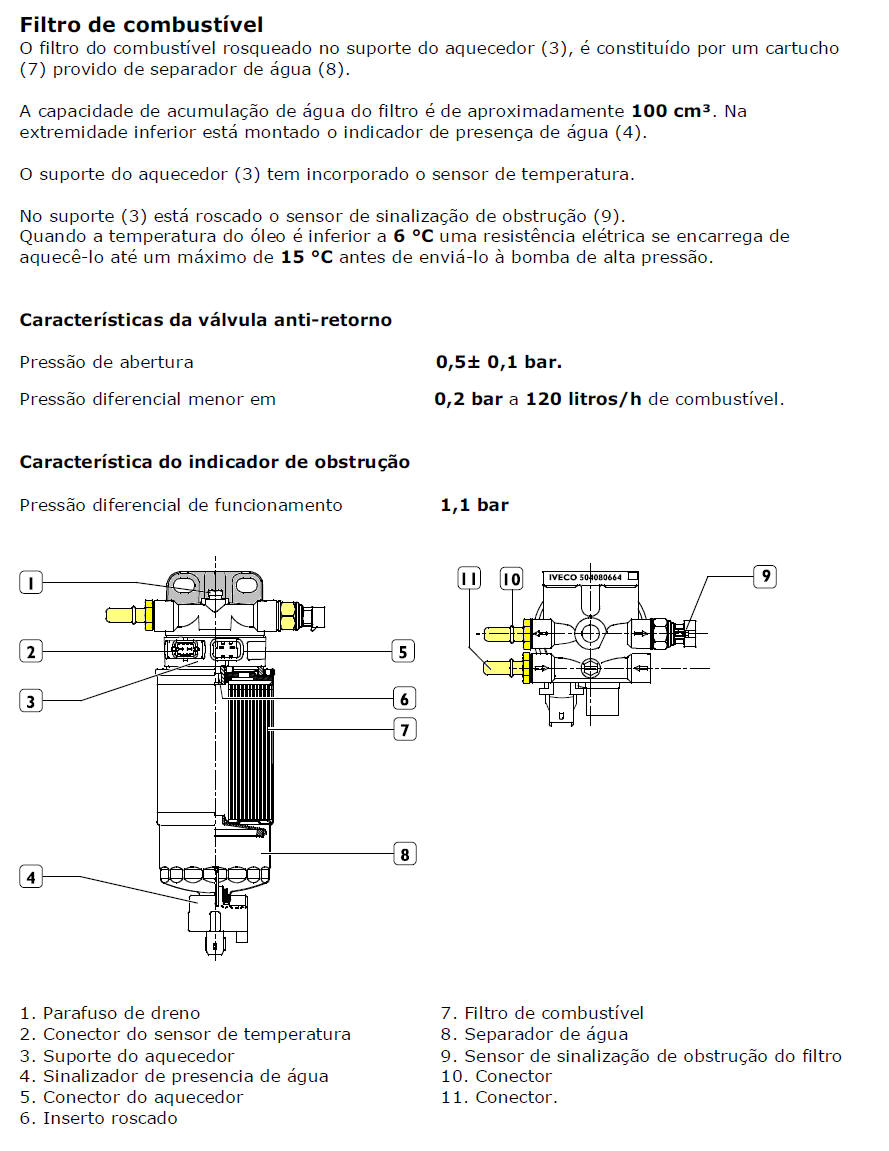 temperatura do combustível Com a temperatura do combustível superior a 75 °C medida pelo sensor no filtro de combustível, a centralina gerencia o regulador de vazão a fim de reduzir a pressão na linha (não modifica os tempos de injeção). Se a temperatura supera os 90 °C, a potência é reduzida para 60%.