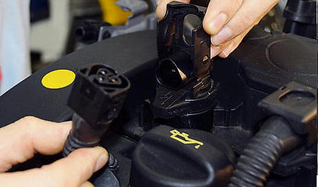 sensor de nível de óleoSensor de medição de nível de óleo: fornecido pela Valeo, o sensor de nível de óleo motor fornece informações completares sobre o nível do óleo do motor ao condutor através de uma mensagem no painel de instrumentos, sempre ao ligar o carro. Alimentado constantemente em 12V, envia um sinal com tensão de saída proporcional ao nível de óleo presente no cárter do motor. O nível de óleo faz variar a resistência interna: quanto mais alto o nível do óleo, mais fraca a resistência, fazendo com que a tensão de saída diminua |