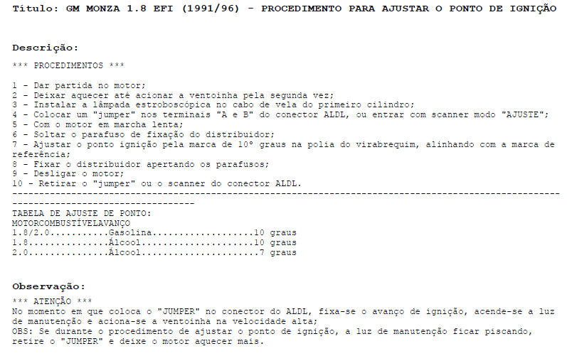 COMO AJUSTAR O PONTO DE IGNI��O