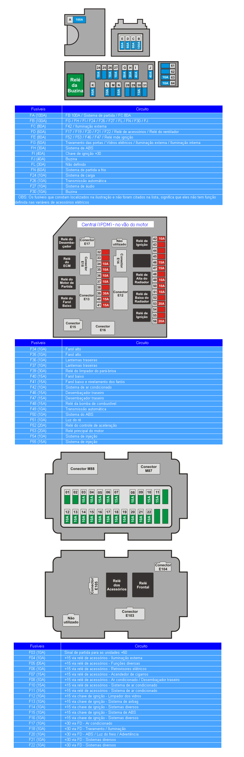 reles e fusíveis do sistema