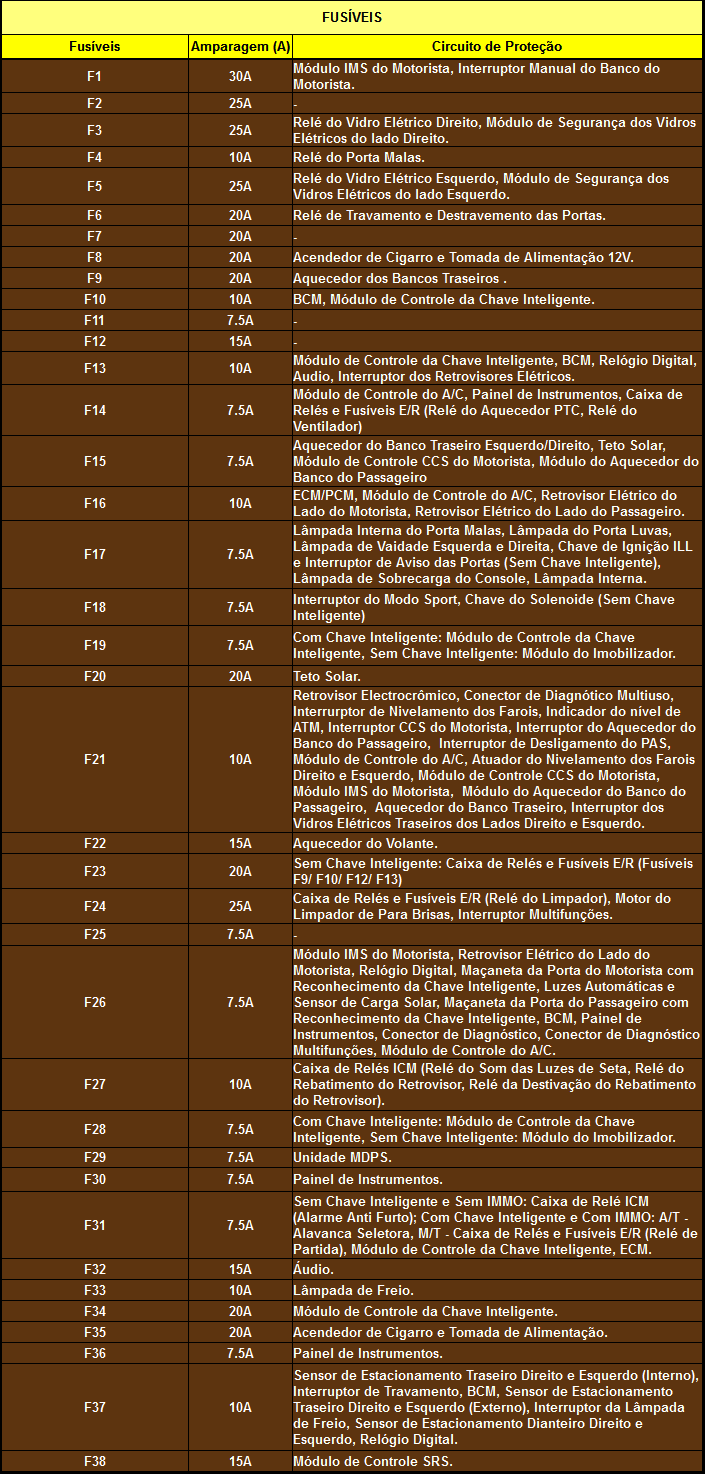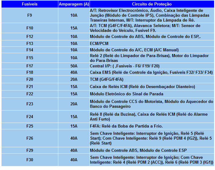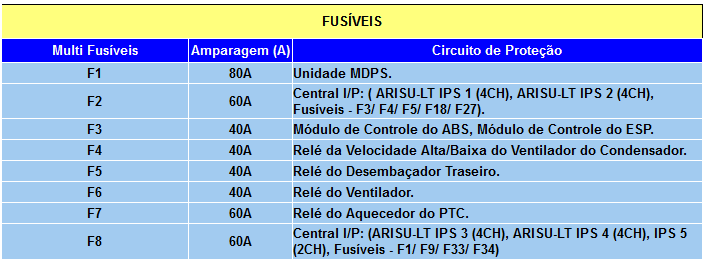 FUSÍVEIS E RELES DO SISTEMA