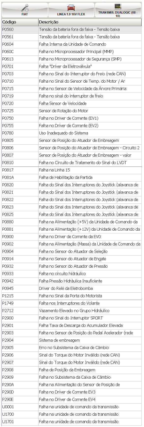 c�digos de falhas