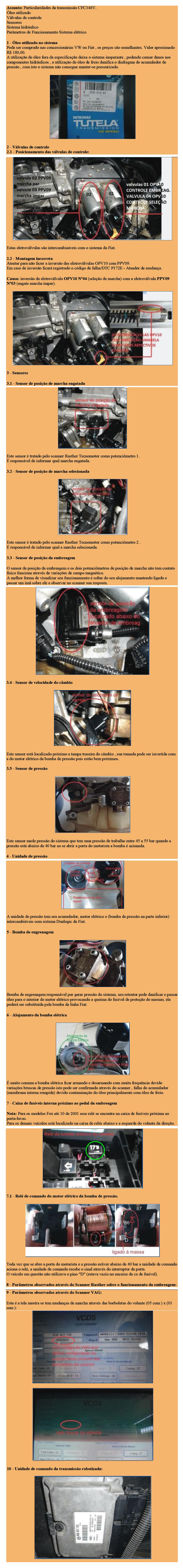 O sensor de posi��o da embreagem e os dois potenci�metros de posi��o de marcha n�o t�m contato f�sico funciona atrav�s de varia��es de campo magn�tico. A melhor forma de visualizar seu funcionamento � soltar do seu alojamento mantendo ligado e passar um im� sobre ele e observar no scanner sua resposta.