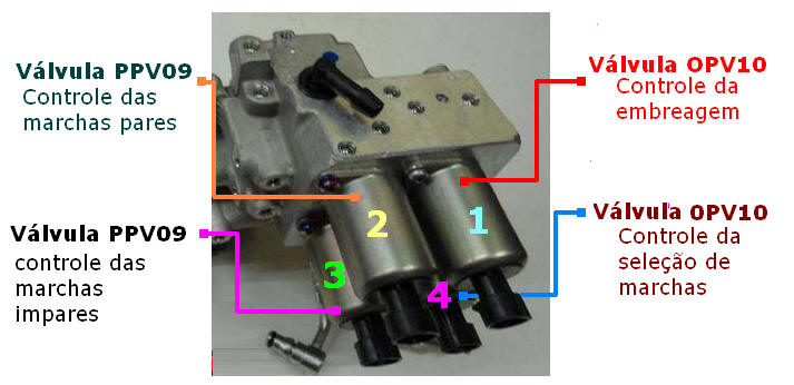 Causa: invers�o da eletrov�lvula OPV10 N�04 (sele��o de marcha) com a eletrov�lvula PPV09 N�03 (engate marcha �mpar).