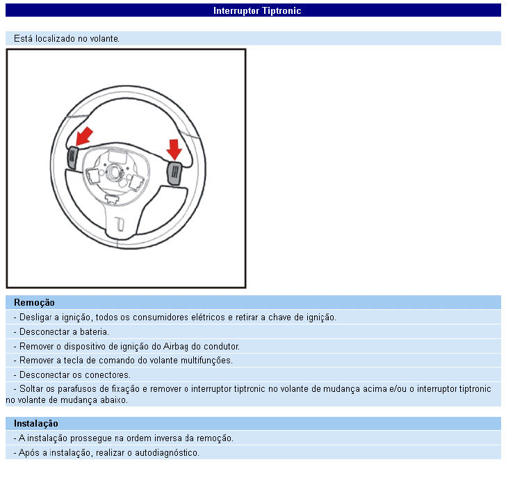 o interruptor tiptronic (montado no volante)