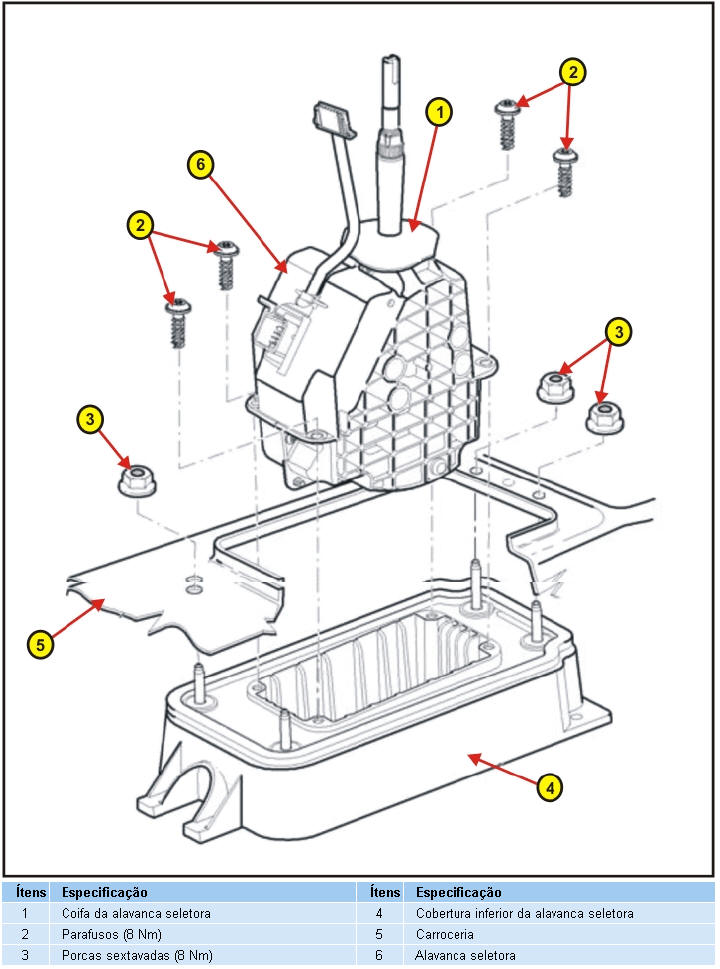 desmontagem da alavanca seletora (joystick)