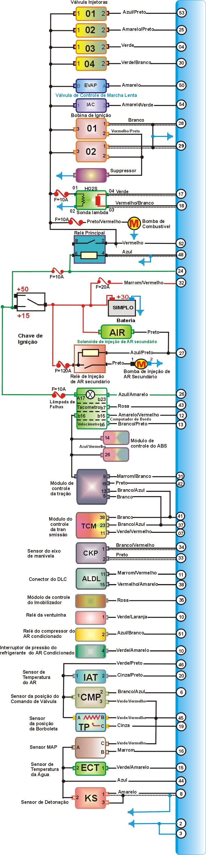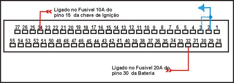 - Ignição desligada, desconecte o multi-plug da UC, usando um MULTITESTE DIGITAL no modo voltímetro, cheque a voltagem entre o terminal multi-plug e terra. - Ignição ligada, cheque