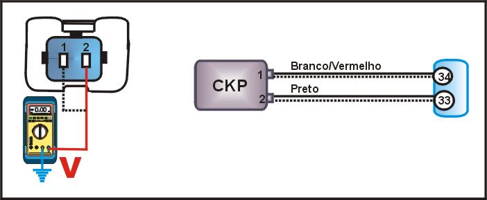 desconecte o multi-plug do sensor CKP e ligue a ignição. - Com um MULTITESTE
