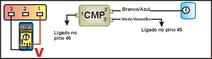 desconecte o multi-plug do sensor CMP e ligue a ignição. - Com um MULTITESTE