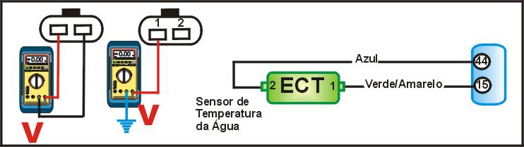 desconecte o multi-plug do sensor ECT e ligue a ignição. - Com um MULTITESTE