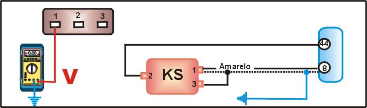 desconecte o multi-plug do sensor KS e ligue a ignição. - Com um MULTITESTE