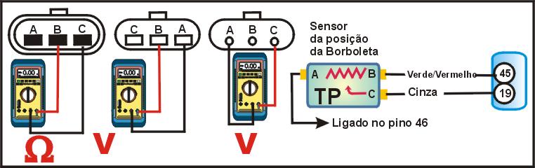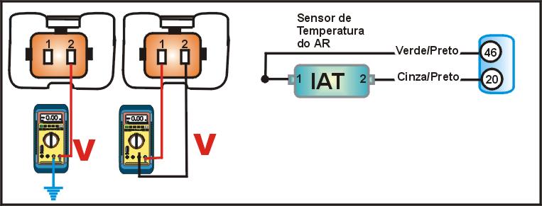 DIGITAL no modo Ohmímetro cheque a resistência entre os terminais multi-plug do sensor