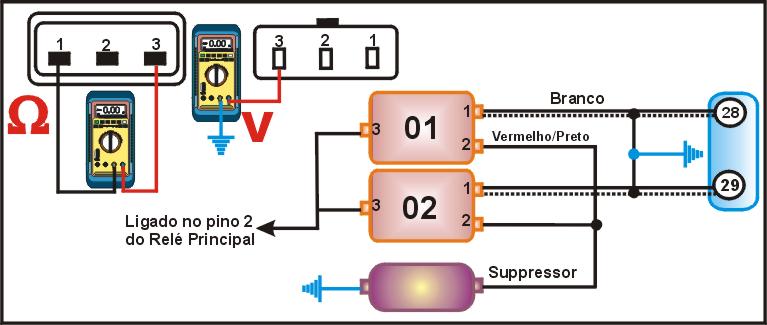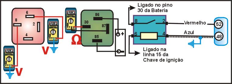 -Ignição desligada, remova o relé e usando um MULTITESTE DIGITAL no