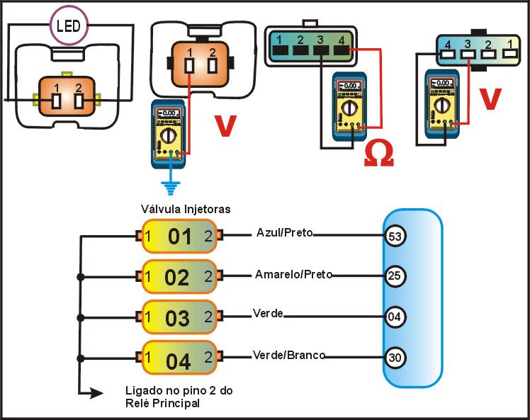 desconecte o multi-plug da Válvula injetora e com um MULTITESTE DIGITAL no modo