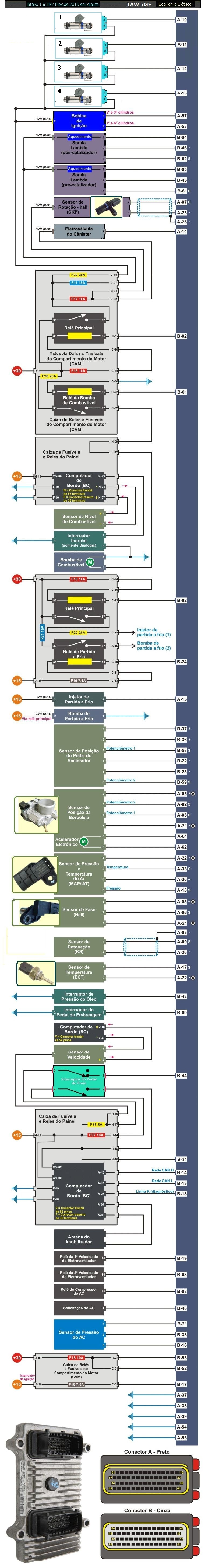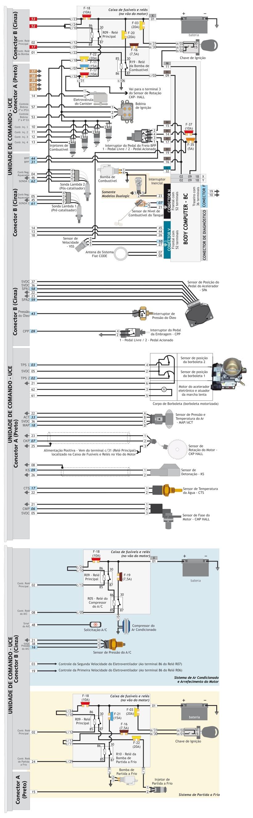 fus�vel 11 - aquecimento da sonda fus�vel 16 - rele da partida a frio, alimenta��o da UC fus�vel 17 - canister e sensor de rota��o fus�vel 18 - rele principal, alimenta��o da UC fus�vel 20 - bomba de combust�vel fus�vel 22 - injetor da partida a frio