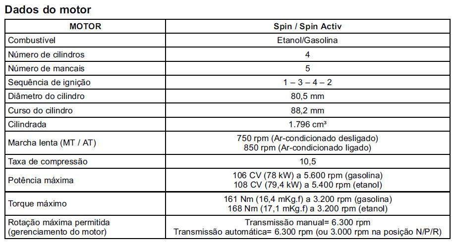 MOTOR - DADOS T�CNICOS