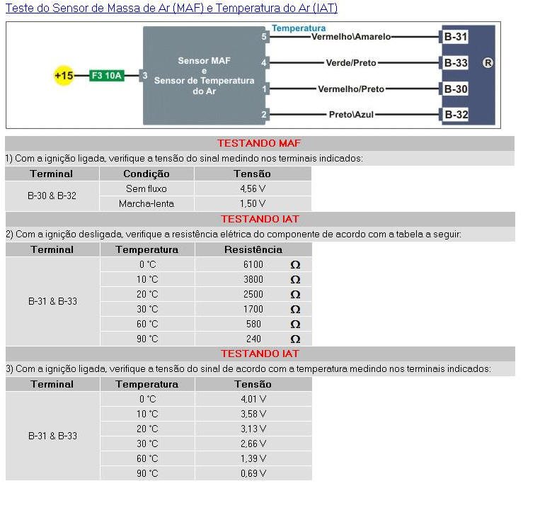 testando o medidor da massa de ar e temperatura do ar
