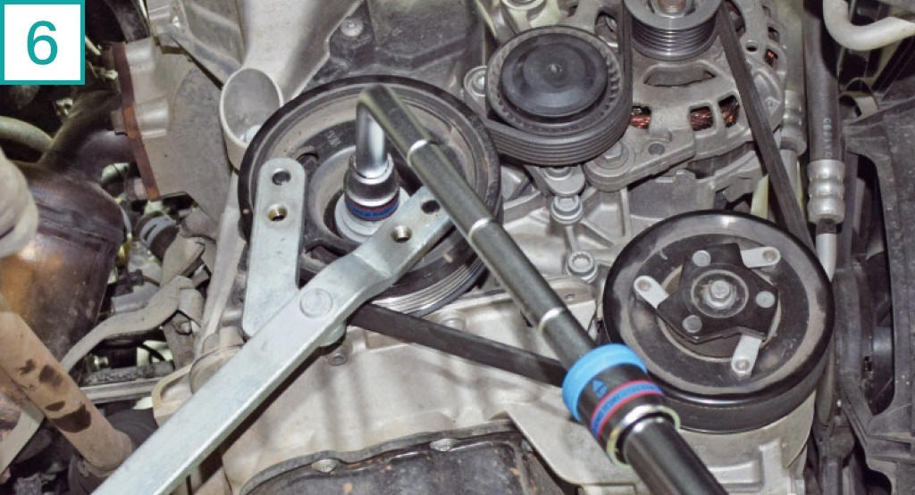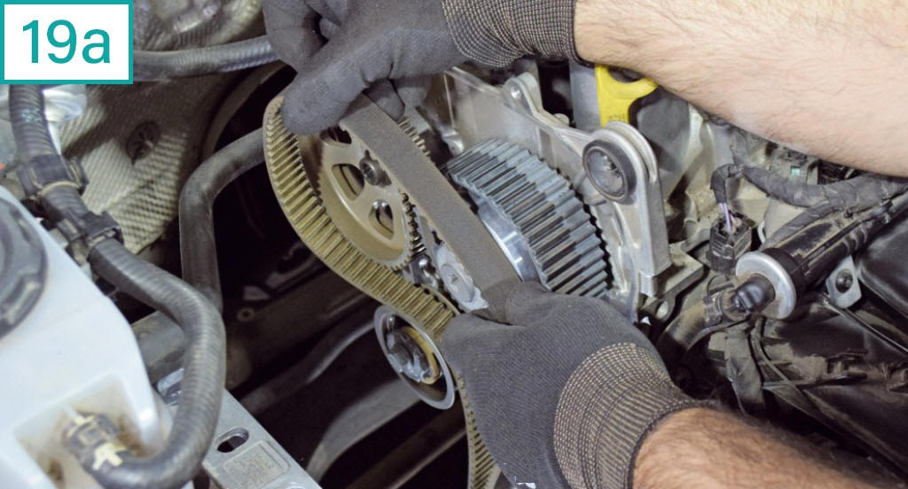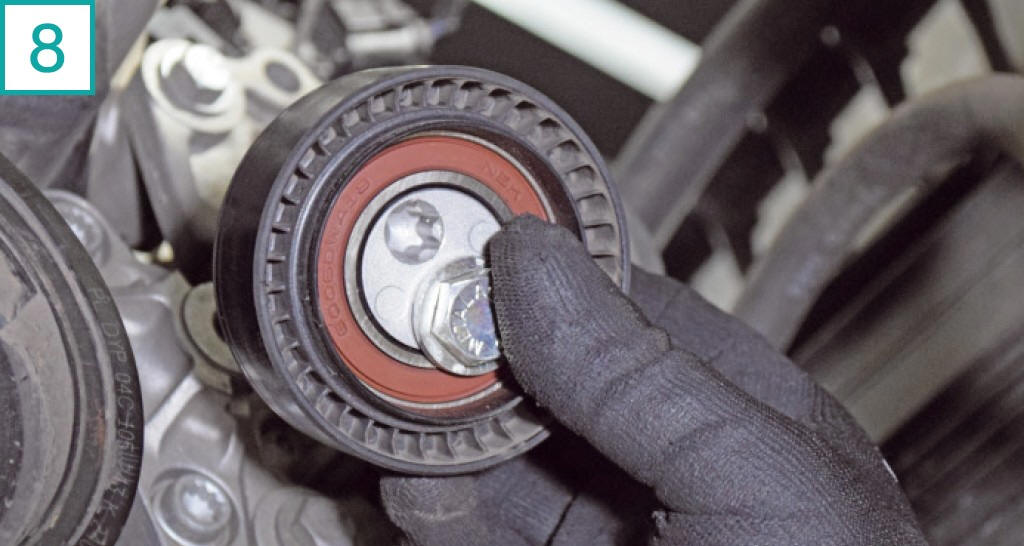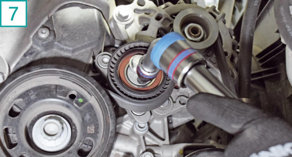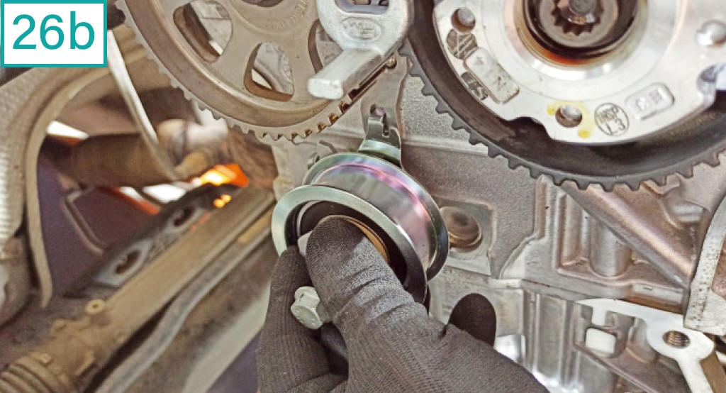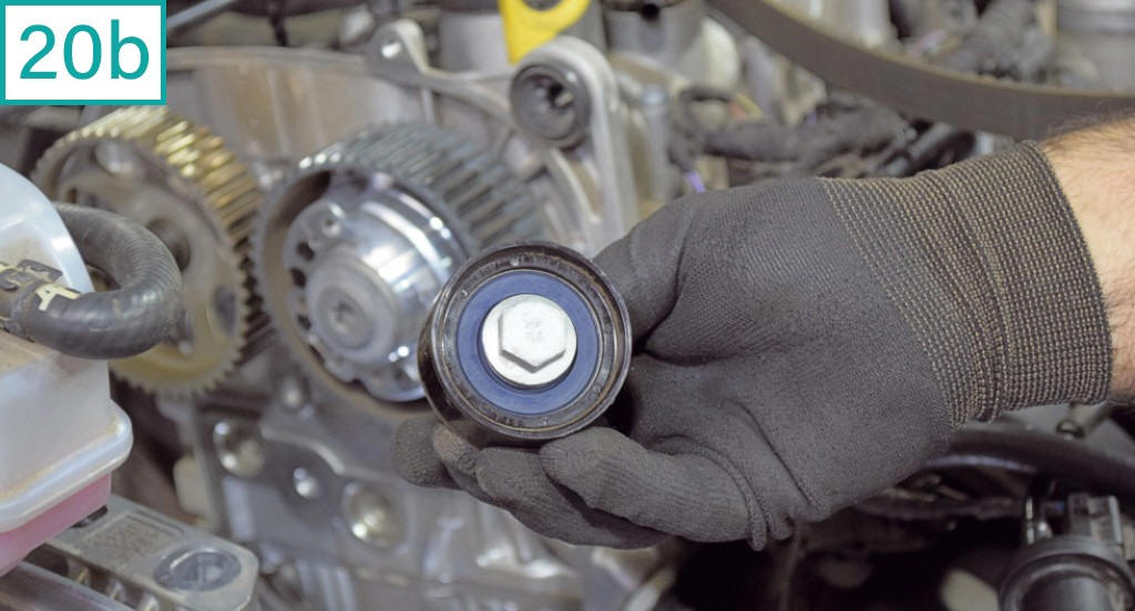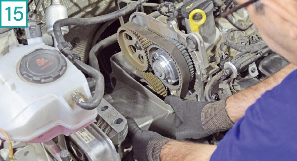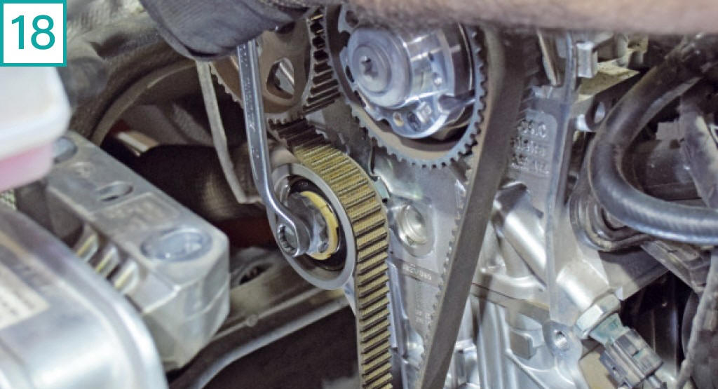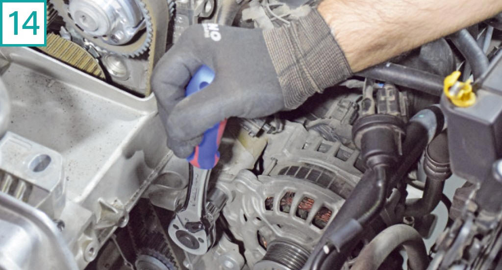18) Solte o tensor com chave 13 mm para folgar a correia.