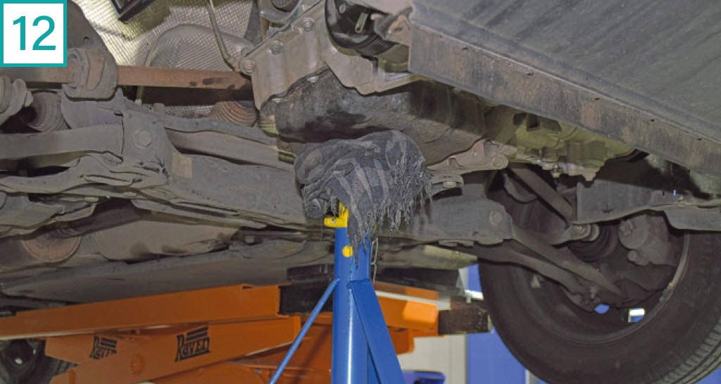 | 13) Solte os parafusos do suporte do motor no coxim com soquete sextavado 18 mm |