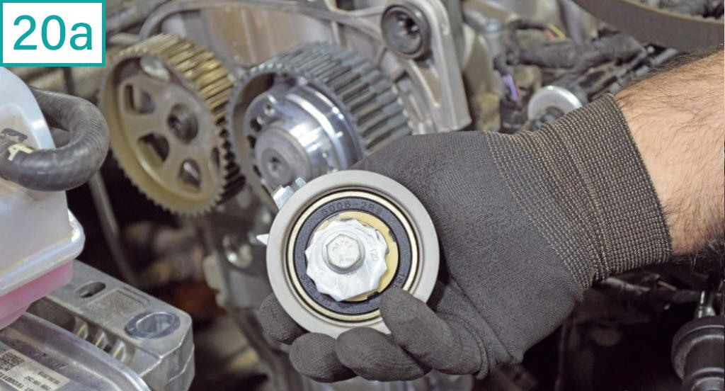 20) Remova o tensor (20a) e solte o rolamento-guia (20b) com chave 16 mm.