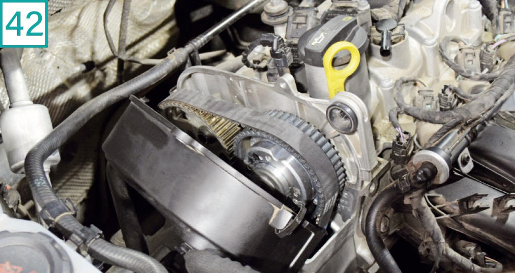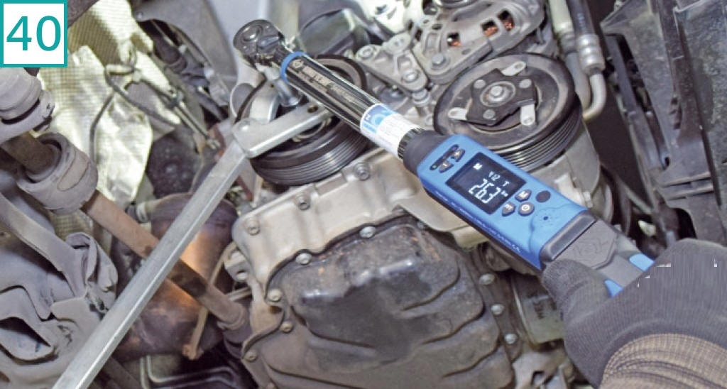 40) O torque na polia da correia do virabrequim deve ser aplicado em duas etapas: 150 Nm + angular 180�. Como n�o havia espa�o para aplicar o torque angular em apenas um movimento, ele foi dividido em duas etapas (90� + 90�).