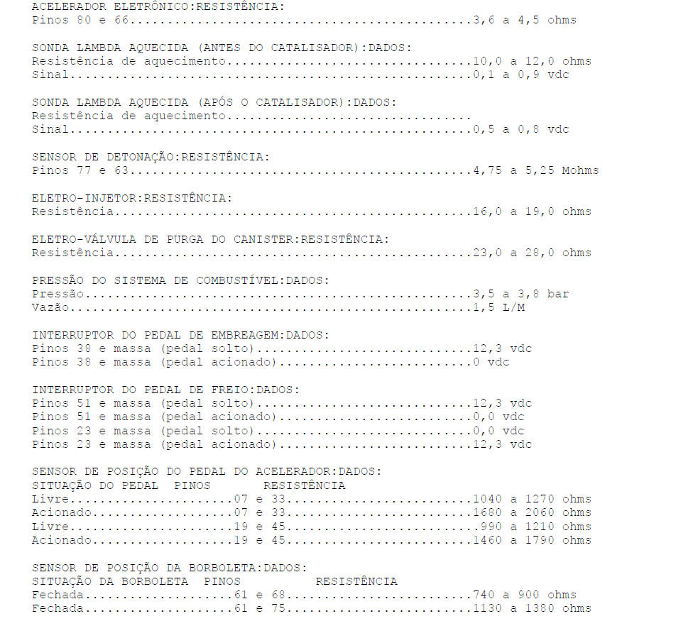 C�DIGOS DE FALHAS ESPEC�FICOS